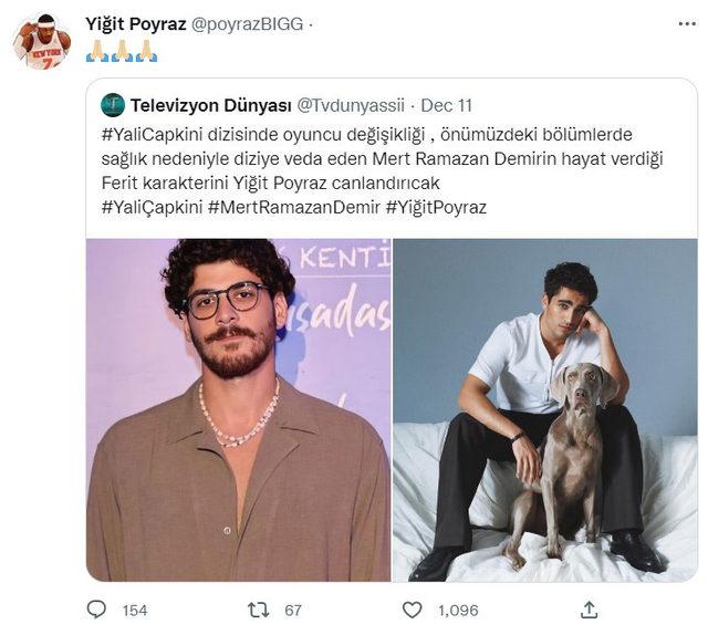 Star TV'nin reyting rekortmeni dizisi Yalı Çapkını hakkında şaşırtan bir iddia ortaya atıldı. Dizi gündemine dair haberler paylaşan bir Twitter hesabı, Mert Ramazan Demir'in Yalı Çapkını'ndan ayrılacağını, yerine ise Survivor 2021 finalisti Yiğit Poyraz'ın geleceğini söyledi. Yiğit Poyraz'dan konu hakkında ilk paylaşım geldi.