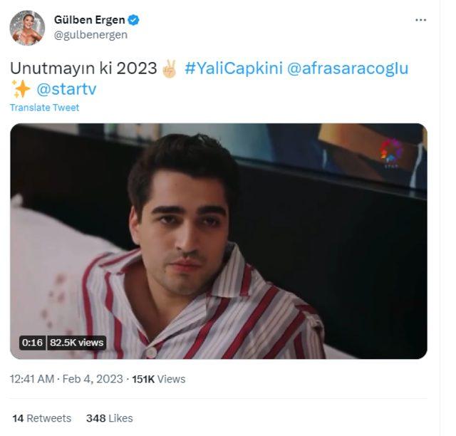 Afra Saraçoğlu ve Mert Ramazan Demir’in başrollerini paylaştığı Yalı Çapkını dizisi büyük bir ilgiyle takip ediliyor. Son bölümüyle büyük yankı uyandıran dizide Seyran'ın sahneleri sosyal medyanın gündeminde oturdu. Seyran önce Pelo'yu saçından tutup evden kovdu sonra da Ferit'i elinde sopayla kovaladı. Dizinin son bölümünde; Gülben Ergen’in fenomen sözü, “Bana unutmayın ki hiçbir şey olmaz” sözlerine de yer verildi...Yalı Çapkını 20. bölümde Ferit ve Seyran'ın arasında geçen diyalog dikkat çekti. Seyran’ın saldırıya uğrayan eşi Ferit’e, “Unutma ki sana hiçbir şey olmaz” demesi, akıllara Gülben Ergen’i getirdi.Ergen de o sahneyi twitter hesabı üzerinden paylaşarak gülümsetti. Ergen; gönderiyi “Unutmayın ki 2023” diye yazarak yayınladı. İşte o paylaşım;