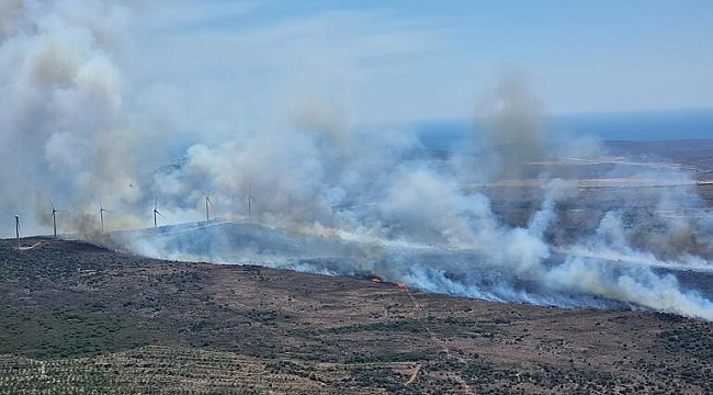 İzmir'in Çeşme ilçesinde makilikte başlayan yangın, rüzgarın da etkisiyle Zeytineli mevkisine ve İzmir - Çeşme otoyolunun bir bölümüne de sıçradı. İzmir Orman Bölge Müdürlüğü’ne ait 5 helikopter ve 3 uçak ile havadan, 15 arazöz ile karadan bölgede alevlere müdahale sürüyor.