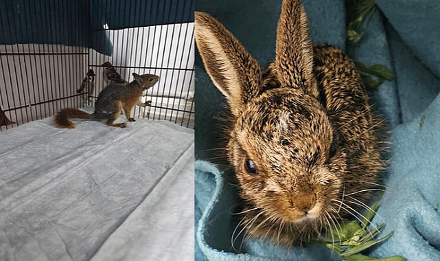 Yangından yaralı kurtarılan yavru sincap...