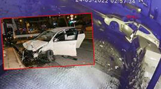 Kadıköy Caddebostan'da yarış yaptığı iddia edilen bir sürücünün kullandığı otomobil, beton dubalara, çöp konteyneri ve elektrik direğine çarptı. Yoldan geçen diğer otomobillerin son anda kurtulduğu kaza güvenlik kamerasına yansırken, otomobili kullanan sürücü kaçtı.