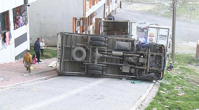 Kaza, dün saat 15.00 sıralarında esenyurt Selahattin Eyyubi Mahallesi 1555. Sokakta meydana geldi. Edinilen bilgiye göre, yokuşu çıktığı sırada bir anda duran 34 YZP 70 plakalı kamyon, bir anda geriye doğru gelmeye başladı. Sürücüsünün de direksiyon hakimiyetini kaybettiği kamyon, devrildi. Kaza sonucu sürücü kolundan hafif şekilde yaralandı. İhbar üzerine olay yerine polis ve sağlık ekipleri geldi. Sağlık ekipleri yaralanan sürücüyü, hastaneye kaldırdı. Yaşanan kaza anı ise bir apartmanın güvenlik kamerasına yansıdı.