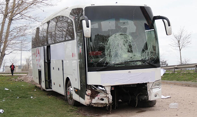 Yolcu otobüsü, beton blok ve bariyerlere çarptı: 17 yaralı
