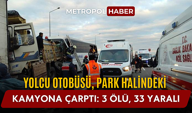 Yolcu otobüsü, park halindeki kamyona çarptı: 3 ölü, 33 yaralı