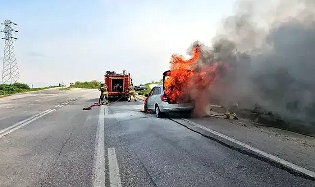 Yolda alev alan otomobil kullanılamaz hale geldi