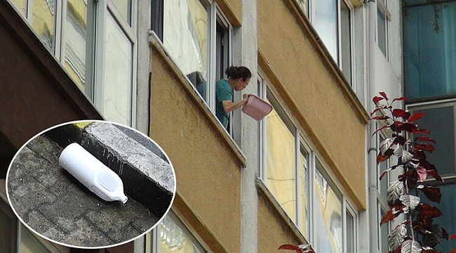 Olay, dün saat 11.30 sıralarında yaşandı. 19 Mayıs Mahallesi'ndeki 5 katlı binanın 4'üncü katında oturan N.G., iddiaya göre evinin penceresinden yoldan geçenlerin üstüne cam şişeler fırlattı.Daha sonra aşağı kezzap ve çamaşır suyu döken kadın bir türlü sakinleşmeyince polise haber verildi. N.G., olay yerine gelen polis ve sağlık ekiplerinin eve girmemesi için pencereden kaynar su dökmeye başladı.İtfaiye ekipleri kadının pencereden düşme ihtimaline karşı şişme hava yastığı açarak önlem aldı.Polisin kelepçe takarak gözaltına aldığı N.G., ambulansa alınarak hastaneye kaldırıldı.Kadının pencereden aşağı döktüğü kezzap mahalle esnafı tarafından yıkanarak temizlendi.N.G.'nin son 3 aydır sürekli saldırgan tavırlar sergilediği, defalarca şikayet edildiği ve yan binadaki kafe çalışanını bıçakla yaraladığı öğrenilirken, N.G.'nin kafenin tabelasını elindeki cisimle kırdığı anlar güvenlik kamerasına yansıdı.
