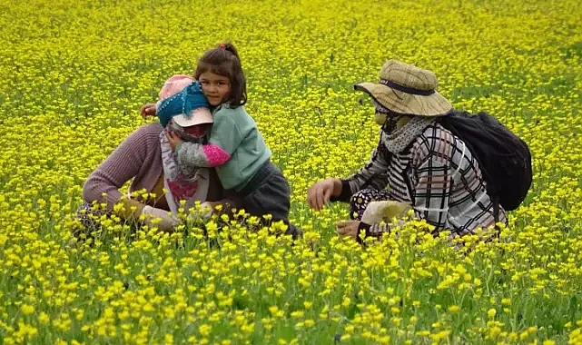 Hakkâri'nin Yüksekova ilçesinde kadınlar, bahar mevsimi ile sarı çiçekler açan ovada, peynir ve çeşitli yemek yapımında kullanılan otları toplamaya başladı.