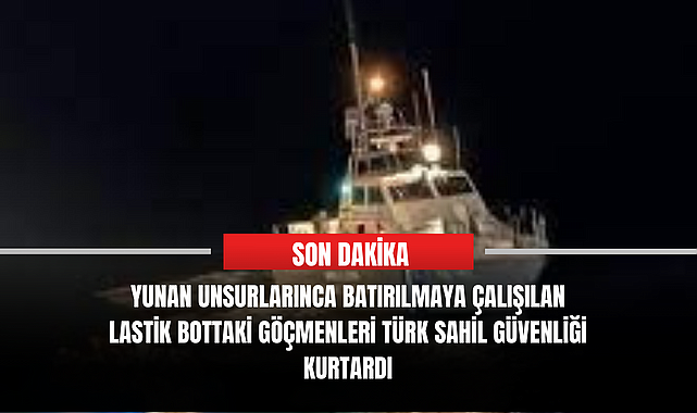 Yunan unsurlarınca batırılmaya çalışılan lastik bottaki göçmenleri, Türk sahil güvenliği kurtardı!