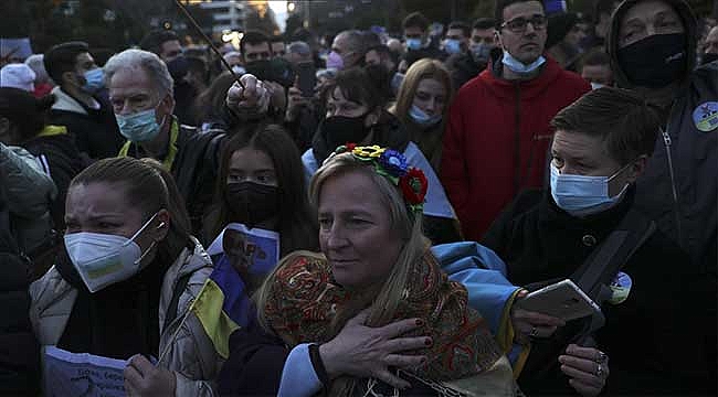 Atina'da yaşayan Ukraynalıların çağrısıyla düzenlenen gösteride eylemciler, "Savaşı durdurun", "Katil Putin", "Savaş ancak beceriksizlerin işidir" yazılı pankartlar taşıdı.