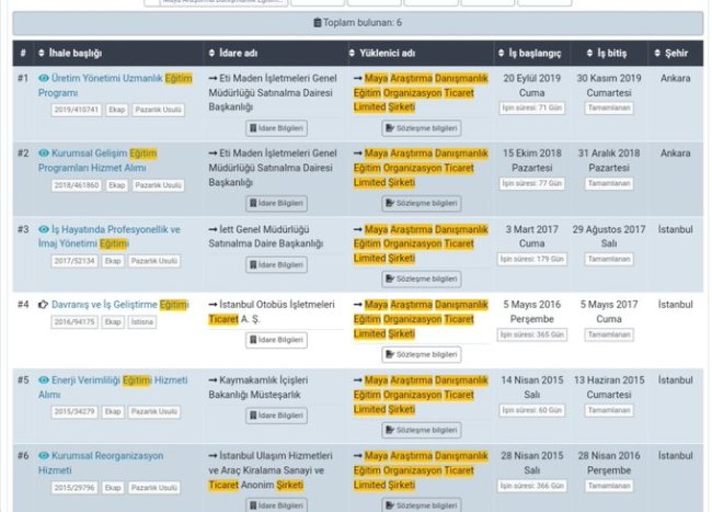 AK Parti Erzurum Milletvekili Zehra Taşkesenlioğlu ile Burdur İl Milli Eğitim Müdürü Nesrin Kakırman'a ait Maya Eğitim Danışmanlık Şirketi'nin kamu kurumlarından aldığı ihalelerin hiçbirinin açık ihale olmadığı, hepsinin pazarlık usulü ile alındığı ortaya çıktı.