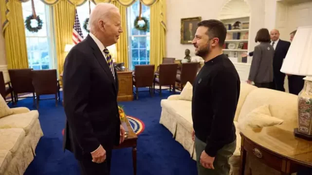BİDEN: ABD, AVRUPA VE DÜNYAYA YÖNELİK TEHDİT ARTIYORABD Başkanı Biden, ABD, Avrupa ve dünyaya yönelik tehdidin arttığını belirterek, “Diktatörler sebep oldukları ölümler ve yıkım için cezalandırılmadıklarında ne olduğunu gördük. Devam ediyorlar. Amerika, Avrupa ve dünyaya yönelik tehdit artmaya devam ediyor. Az önce Ukrayna için Savunma Bakanlığı'na 200 milyon dolar daha aktarılmasına yönelik dökümanı imzaladım. Kongre'yi doğru olanı yapmaya, Ukrayna'nın yanında durmaya ve özgürlük için ayağa kalkmaya çağırıyorum. Bu davaya yardımcı olmak üzere burada bulunduğunuz için size teşekkür etmek istiyorum. Umudunuzu kaybetmenizi istemiyorum” dedi.Zelenski, Biden ile yaptığı görüşmenin ardından ABD Başkan Yardımcısı Harris ile bir araya geldi. Zelenski, Harris’e de ABD’nin desteği için teşekkür etti.