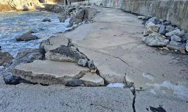 Zonguldak'ta şiddetli fırtına yürüyüş yolunu çatlattı